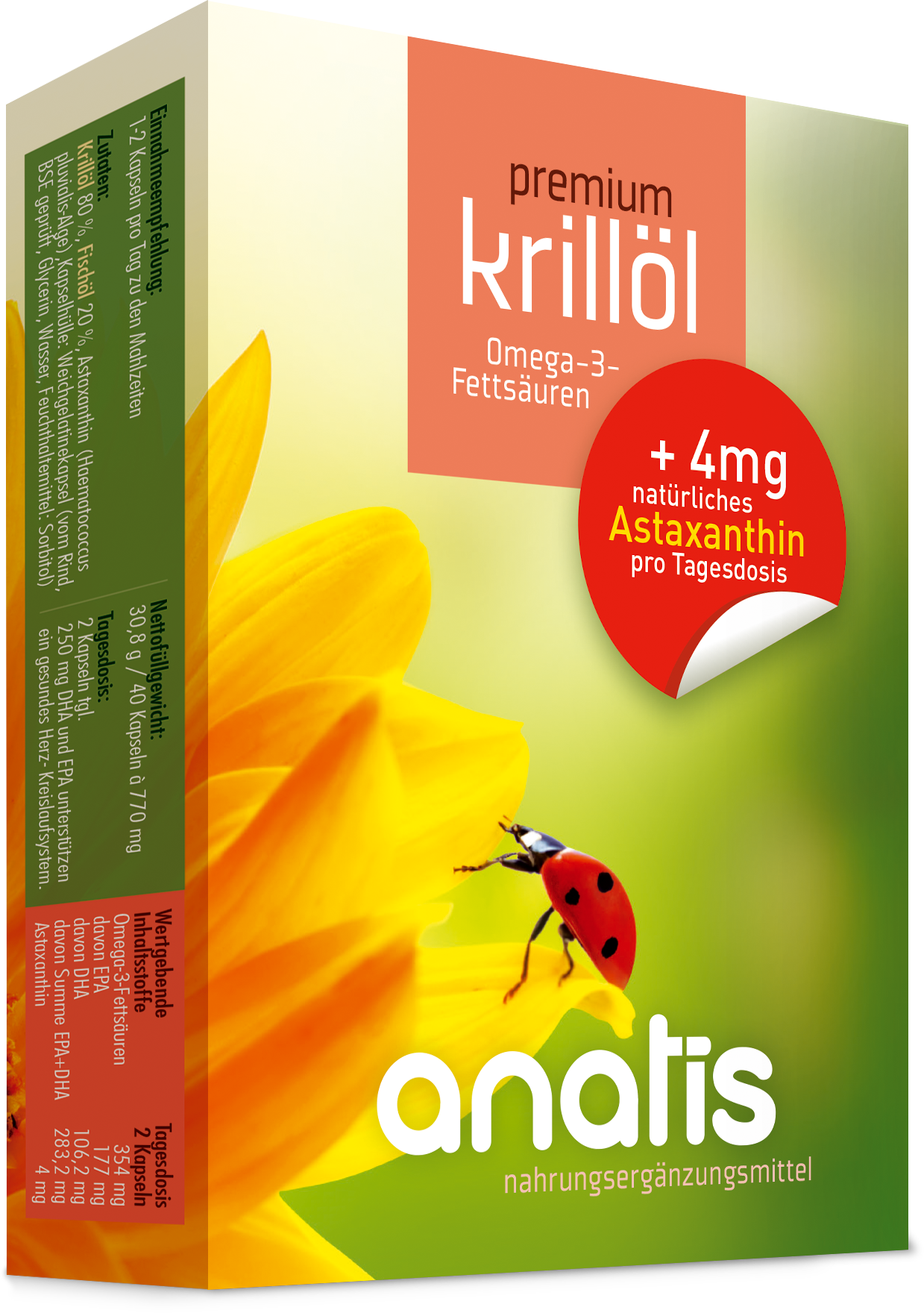 - Az Asztaxantin egy vörös színű festékanyag, természetes kötésű a krillolajban. Az asztaxantin erős antioxidáns és csökkenti az oxidációs folyamatokat.