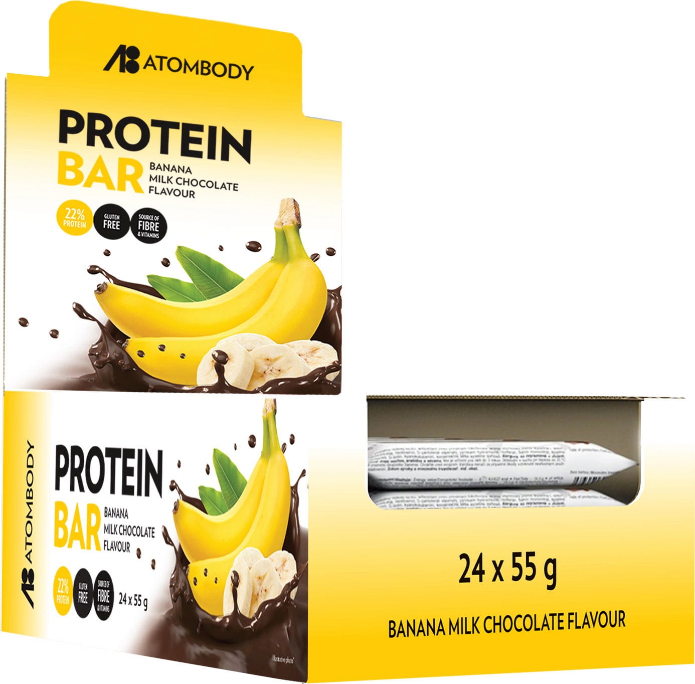 Atombody Fehérjeszelet 24x55g, Banán étcsokoládéban