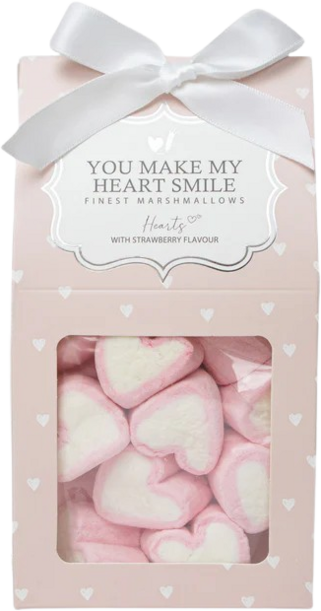 A Bake Affair rózsaszín, eperízű "You make my heart smile" feliratú pillecukor szívei tökéletesek édes, szív alakú üdvözletnek. Ideálisak szeretetteljes ajándéknak, nassolnivalónak, vagy forró csokoládé, sütemények és egyéb édességek díszítéséhez.