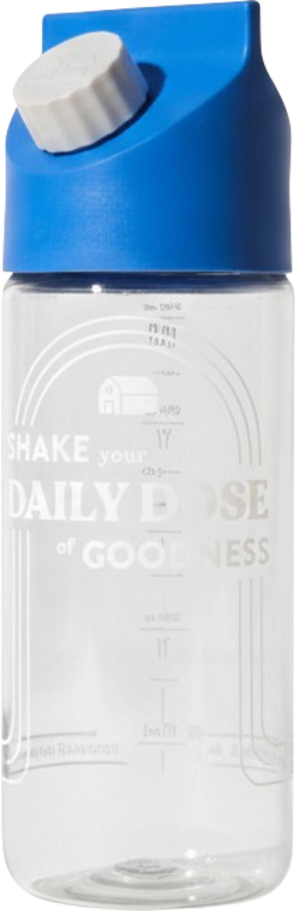 Már rázza vagy még cipeli? A praktikus Blue Farm üvegpalackkal és a hozzá illő adagolókanállal végleg búcsút mondhat a nehéz tejesdobozoknak. Készítse el kedvenc Blue Farm italporát frissen és gyorsan - otthon vagy útközben.