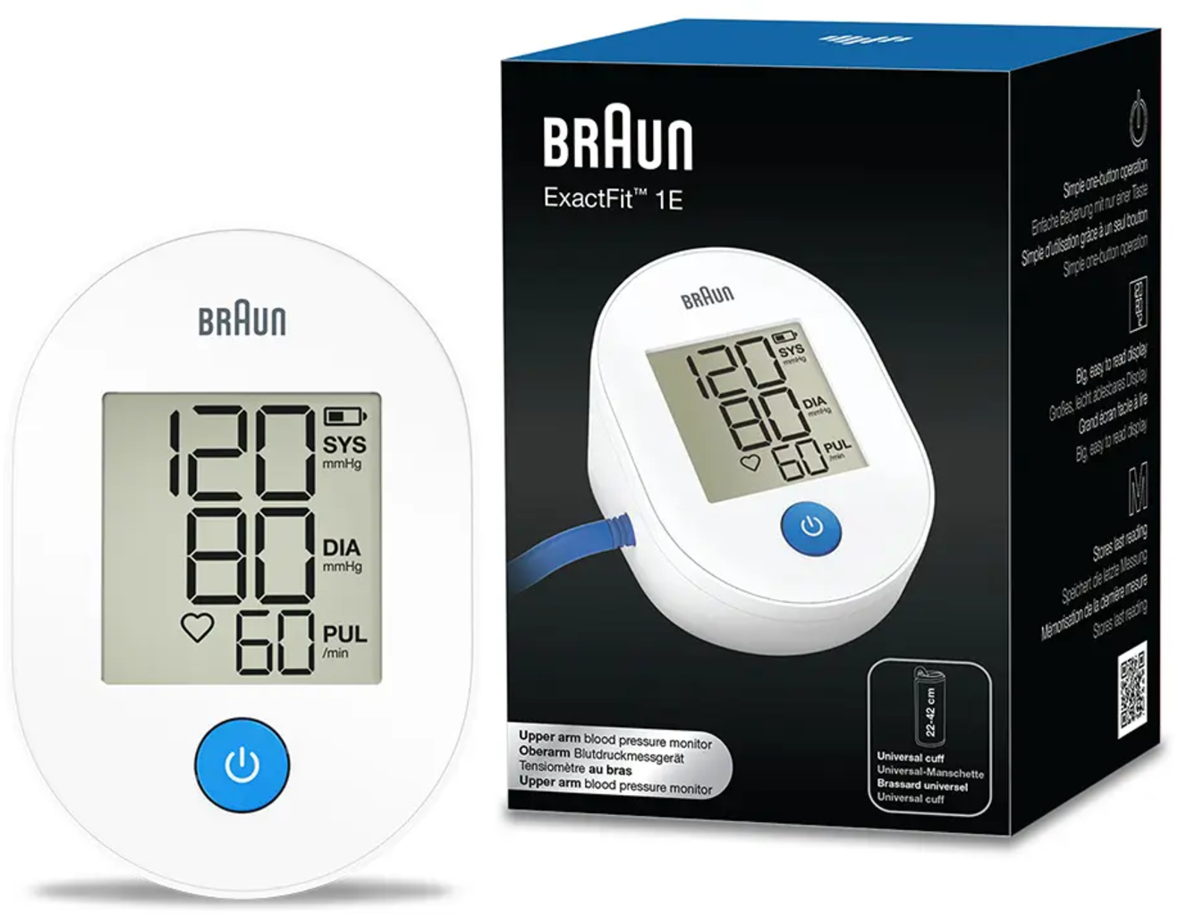 A Braun ExactFit™ 1E készülékkel könnyedén és megbízhatóan mérheti vérnyomását – otthona kényelméből. A klinikailag tesztelt készülék másodpercek alatt pontos méréseket biztosít. A lágy felfújású technológiának és az univerzális mandzsettának köszönhetően a mérés kivételesen kényelmes. Egyszerűen tegye fel, nyomja meg a gombot – és kész is!