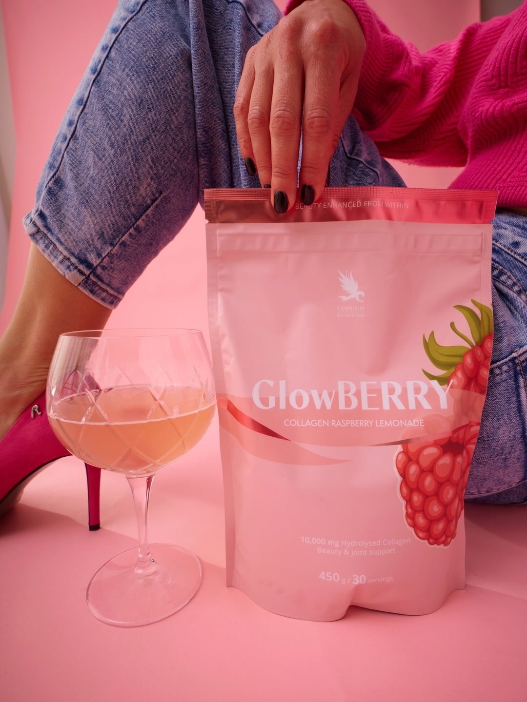 A GlowBERRY egy friss, finom ital 10 000 mg hidrolizált kollagénnel, 125 mg hialuronsavval, valamint a nélkülözhetetlen mikrotápanyagokkal, C-vitaminnal és cinkkel. A formulát acai és csipkebogyó teszi teljessé. A kollagén egy természetesen előforduló strukturális fehérje a szervezetben, de termelése az életkorral csökken.
