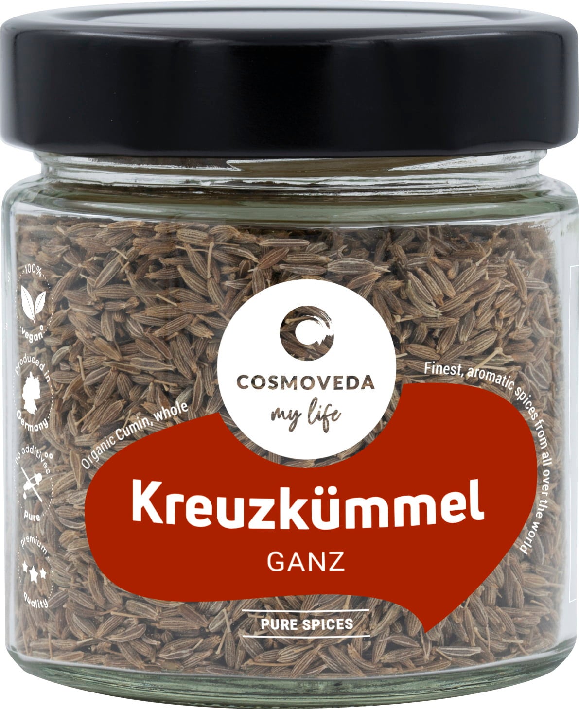 Ez a kömény egész és nem őrölt. A kömény jellegzetes ízének köszönhetően tökéletes az ájurvédikus és indiai konyha ételeinek finomításához. Sokoldalúan felhasználható, curryhez, italokhoz, joghurthoz, salátákhoz (raitas) és savanyúságokhoz.