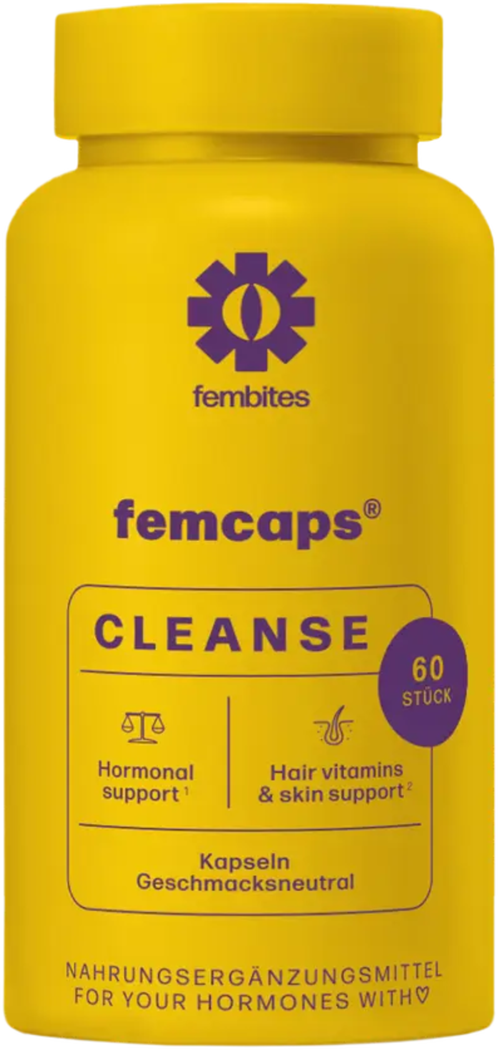 A fembites femcaps® CLEANSE kapszula hormonok vagy gyógyszerek szedését követően alkalmazható. Vegán receptúrája palástfűvel, vitaminokkal, cinkkel és kolinnal dúsított, ezáltal a lehető legjobb támogatást nyújthatja szervezetének. A kapszula nem tartalmaz mesterséges adalékanyagokat, és szintetikus hormonokat.
