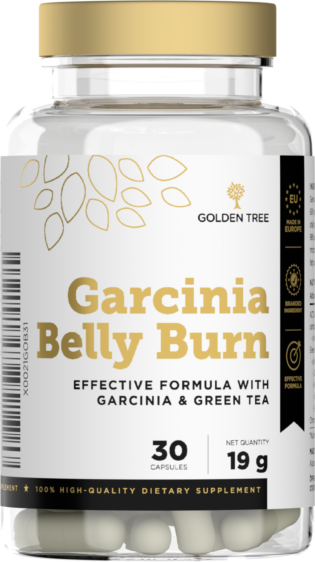 A Golden Tree Garcinia Belly Burn terméke a szabadalmaztatott Garcinia gyümölcskivonatot, az ACTIGAR® DC60-at használja. Ez magas hidroxi-citromsav (HCA) tartalommal rendelkezik. A formula természetes zöld tea levélkivonatot és krómot is tartalmaz, amelyek hozzájárulnak a normál makrotápanyag-anyagcseréhez és a normál vércukorszint fenntartásához.