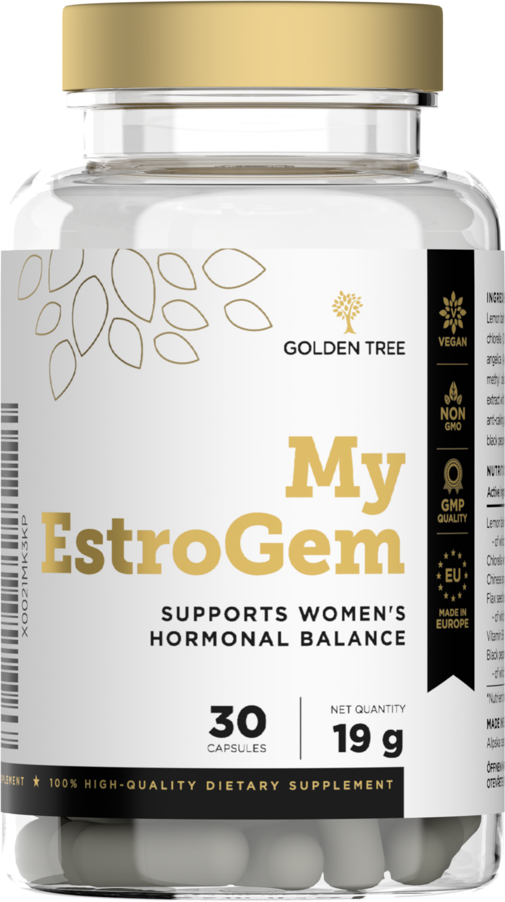 A Golden Tree My EstroGem készítmény természetes, 6 komponensű növényi kivonatokat, chlorellát és B-vitamint tartalmazó komplexből áll az ösztrogéndominancia megelőzésére. Így minden nap magabiztosnak és nőiesnek érezheti magát.