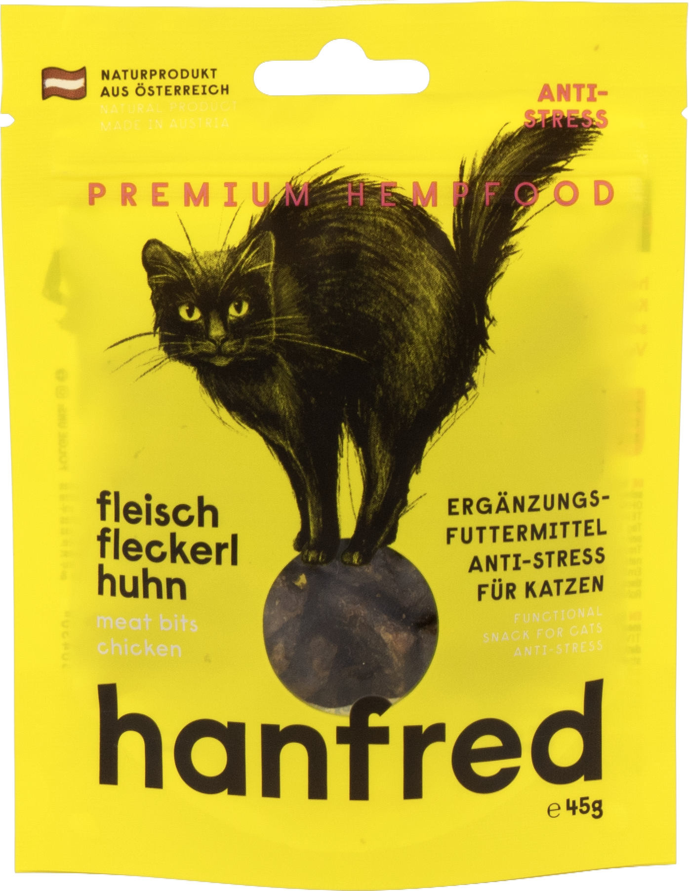 Ha macskája érzékeny a változásokra vagy a stresszes helyzetekre, ez a snack jó választás lehet. A Hanfred Húsos kockák 95% húsból és 5% kenderporból állnak – gabona- és mesterséges adalékanyagok nélkül.