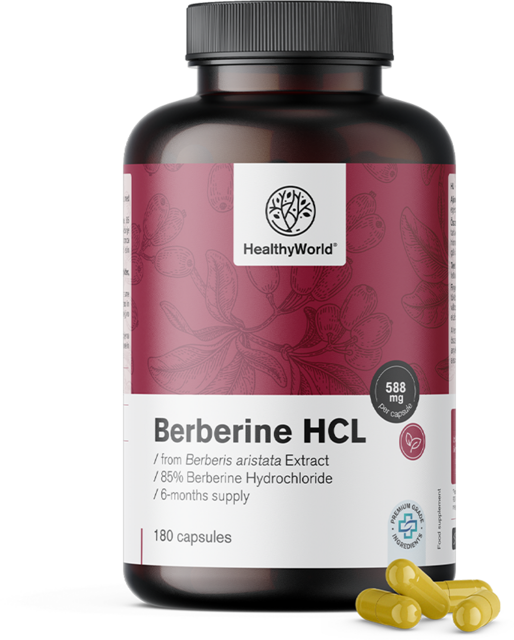 HealthyWorld Berberin HCL 500 mg, 180 kapszula