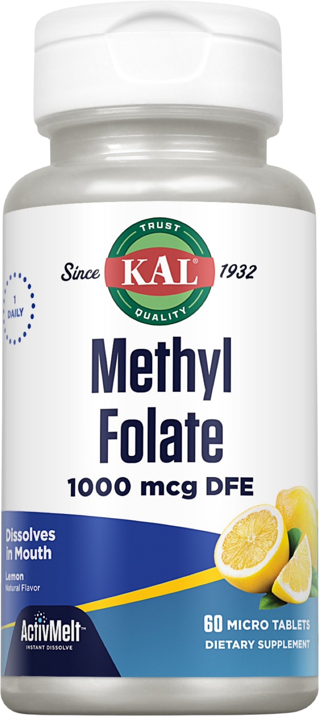 Fedezze fel a KAL Methylfolate 1000 mcg DFE készítményét – a kényelmes társát a napi, kiváló minőségű foláttal történő pótláshoz. Minden egyes szopogatótabletta 1000 mcg aktivált formában lévő metilfolátot (5-metiltetrahidrofolát) tartalmaz, amely közvetlenül a szájnyálkahártyán keresztül felszívódik – víz nélkül.