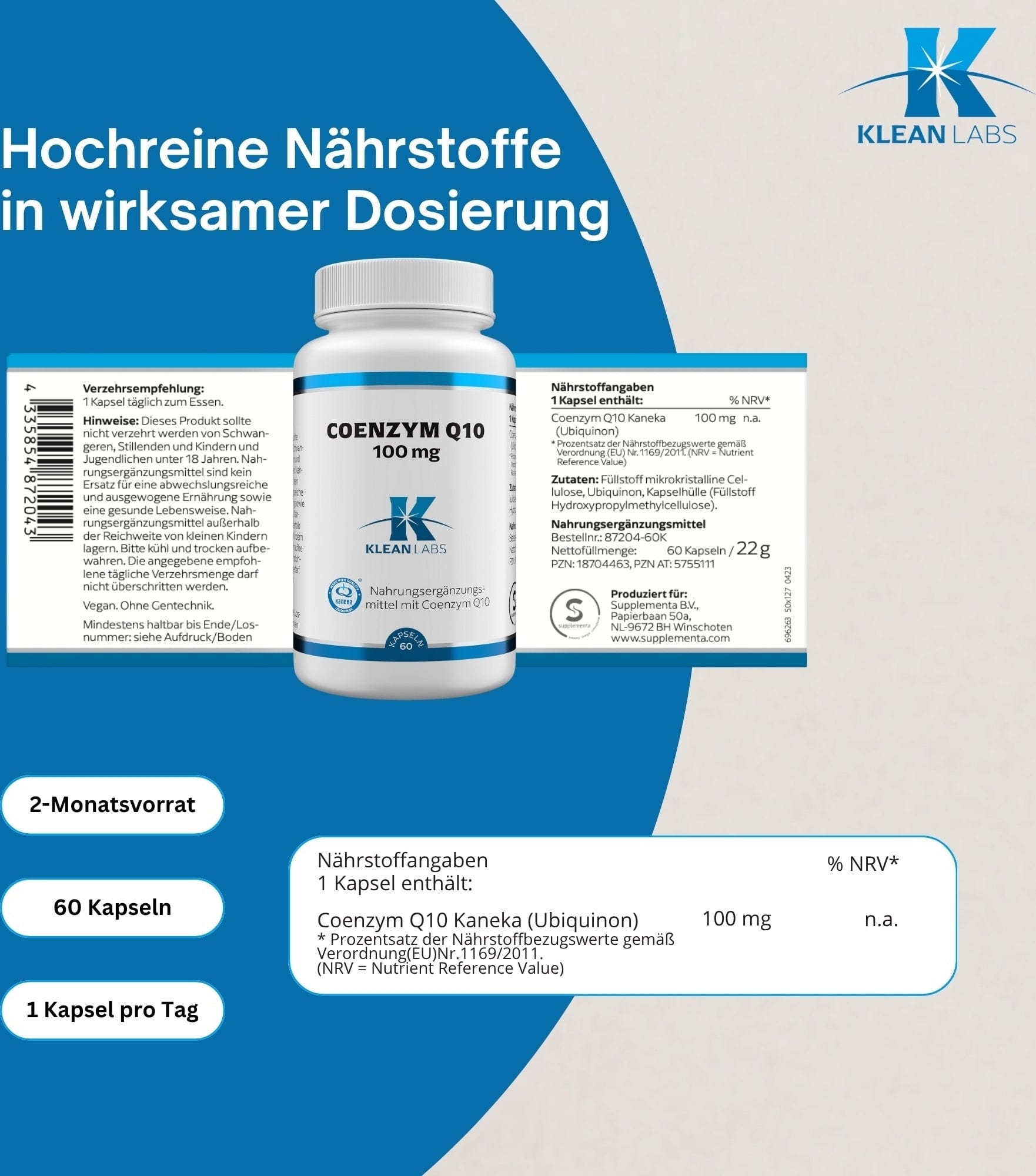 KLEAN LABS Coenzym Q10 100 mg, 60 kapszula