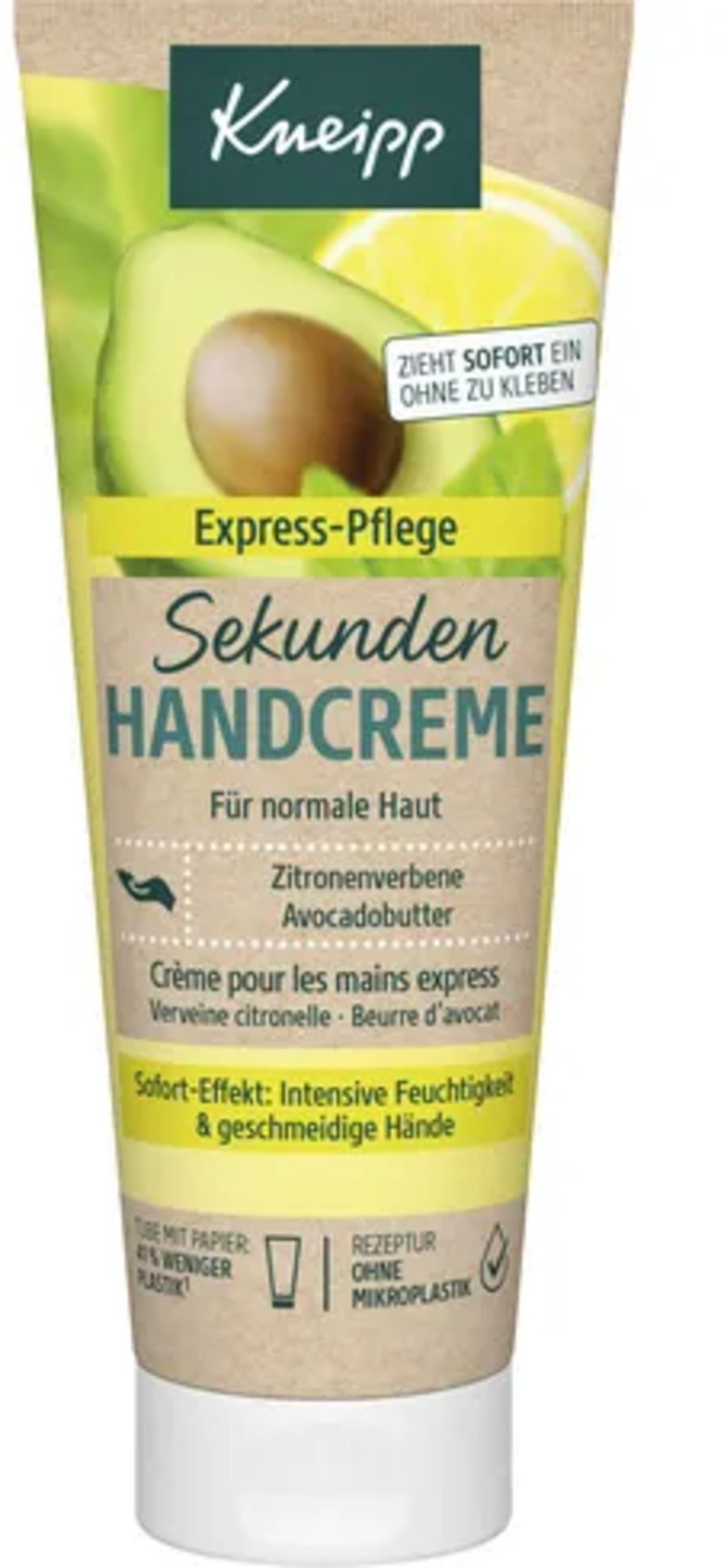 Ha gyorsan van szüksége egy kézkrémre, bízza magát a Kneipp "Pillanatok alatt" kézkrémre. A citromverbéna és az avokádóvaj azonnal hidratálja a bőrt. A krém azonnal felszívódik, kellemesen puha tapintásúvá téve azt.