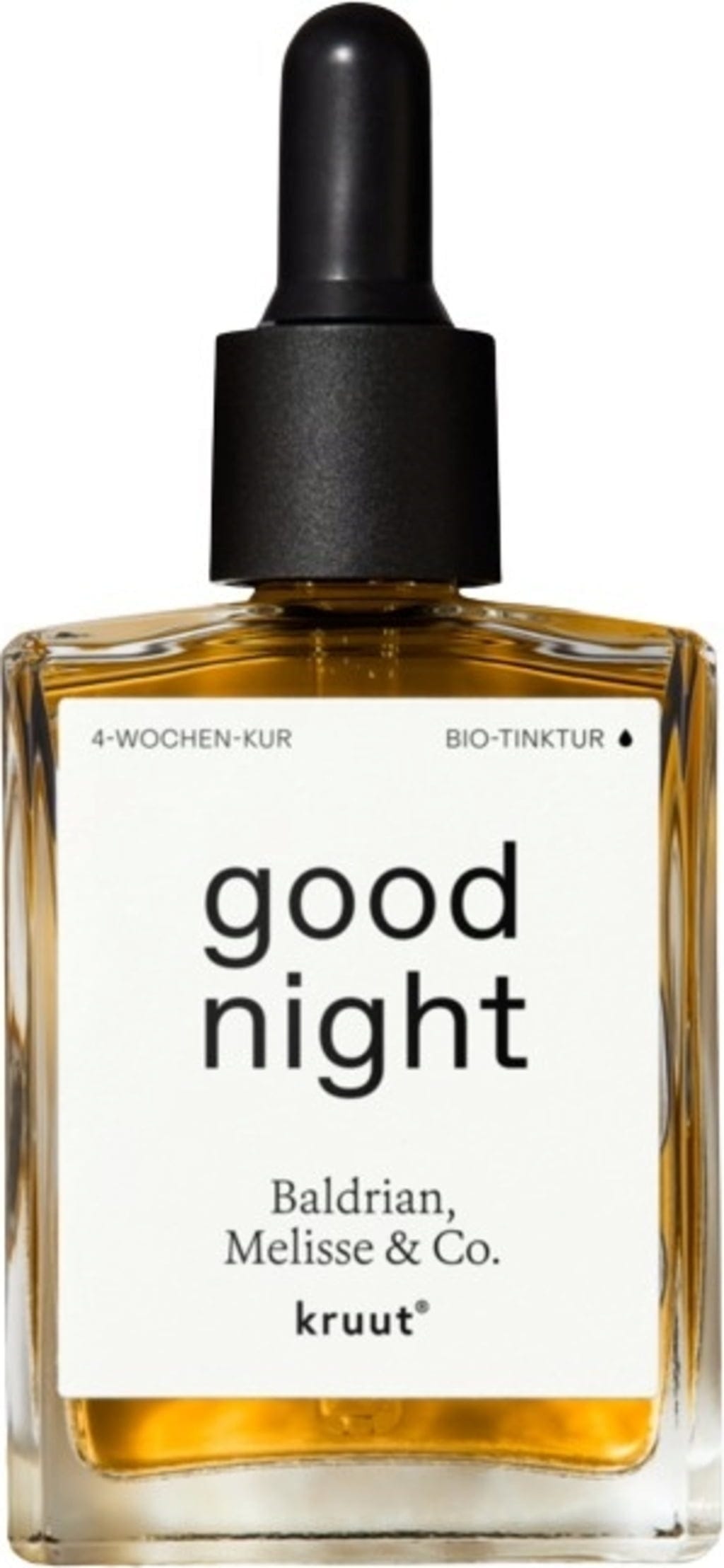A kruut Good Night Vadon termő gyógynövény tinktúrához friss gyógynövényeket és rügyeket szednek kézzel az Alpokban, majd adalékanyagok nélkül bio alkoholba áztatják. A Good Night tinktúra citromfűvet, valeriánát, golgotavirágot, mákot és galagonyát tartalmaz. Ideális az esti rituálé támogatására lefekvés előtt, vagy a meditáció és a jógaórák támogatására.
