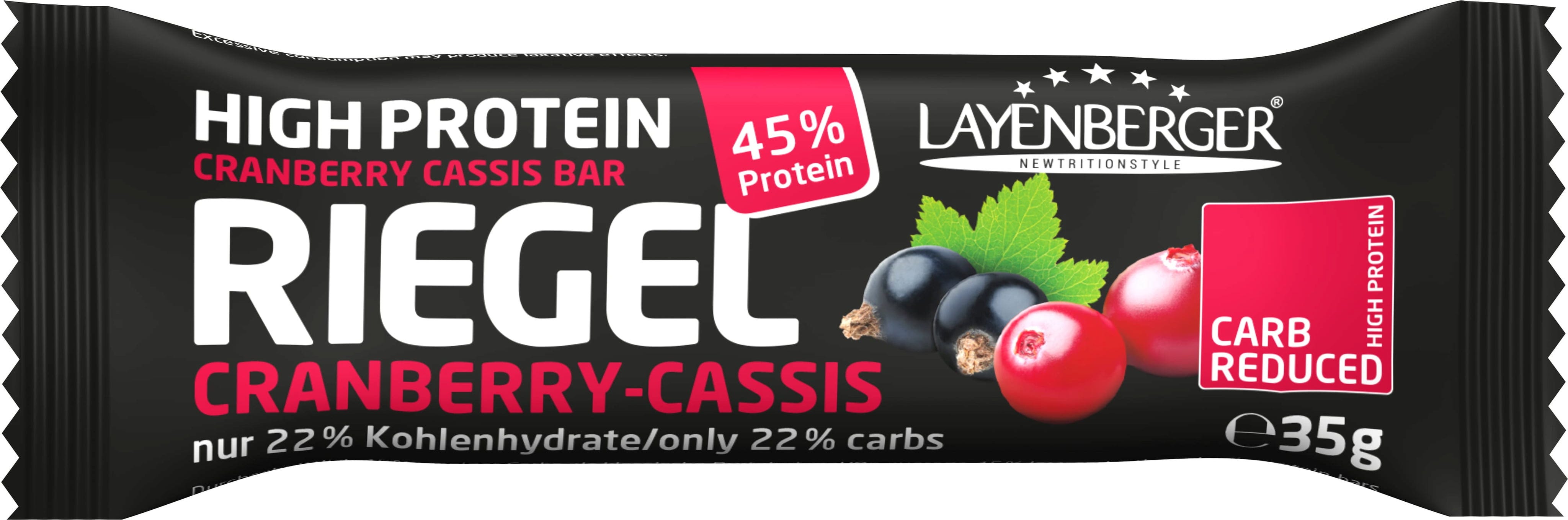 LAYENBERGER High Protein szelet, Vörösáfonya-fekete ribizli (35 g)