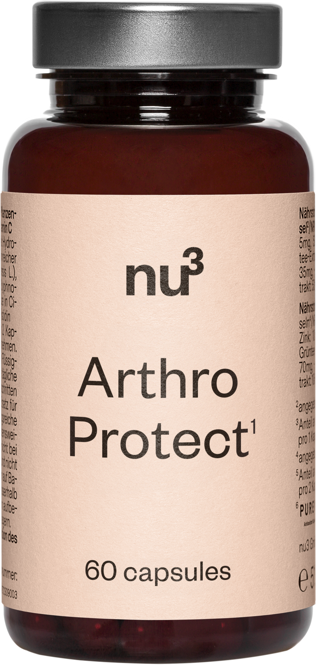 A nu3 Arthro Protect vásárlásával egy jól átgondolt formulát kap, amely szabadalmaztatott UC-II®¹ kollagénből, vitaminokból és válogatott nyomelemekből áll – ideális mindazok számára, akik értékelik a minőséget és a tiszta összetevőket.