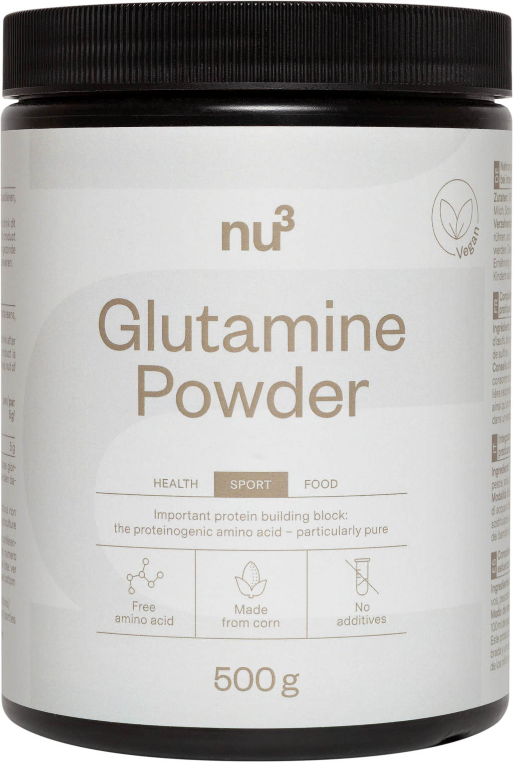 A glutamin egy proteinogén aminosav, és számos fehérjében gazdag élelmiszer alkotóeleme. Különösen intenzív edzések után hasznos lehet az L-glutamin célzott pótlása – például shake formájában vagy vízbe keverve.