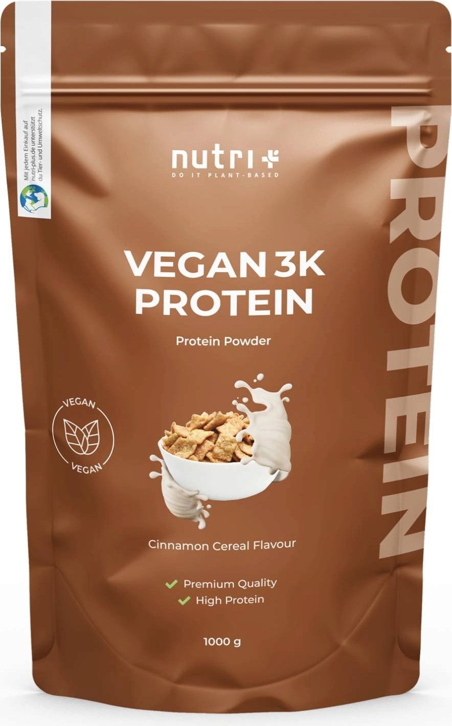 nutri + Vegán 3K proteinpor, Fahéj - Gabonapehely (1.000 g)