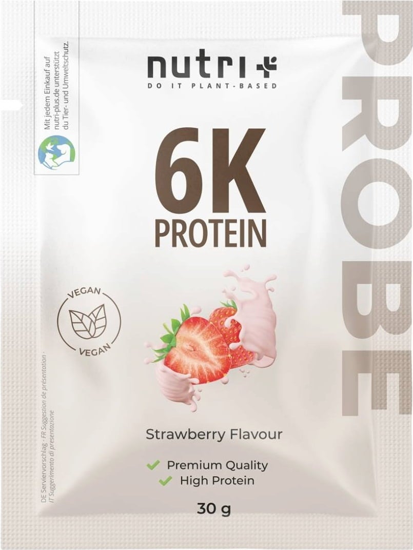 nutri + Vegán 6K proteinpor - Próbaméret, Eper (30 g)
