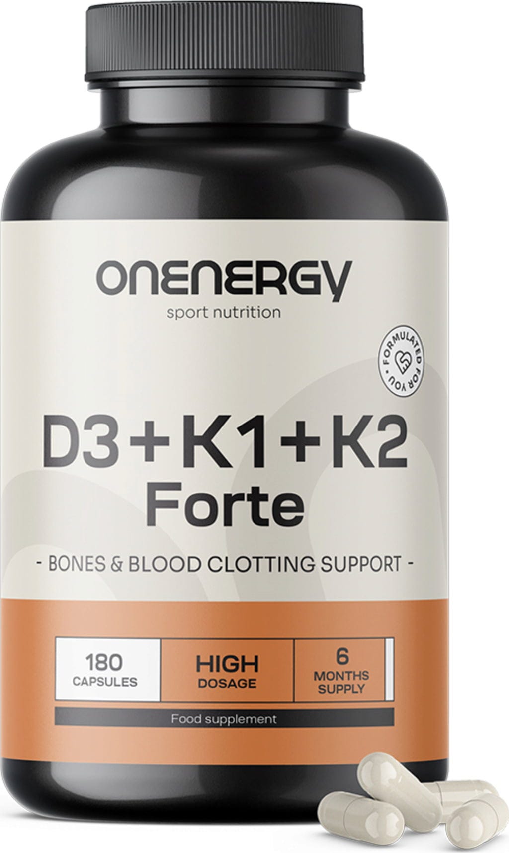 OnEnergy Vitamine D3 + K1 + K2 FORTE, 180 kapszula