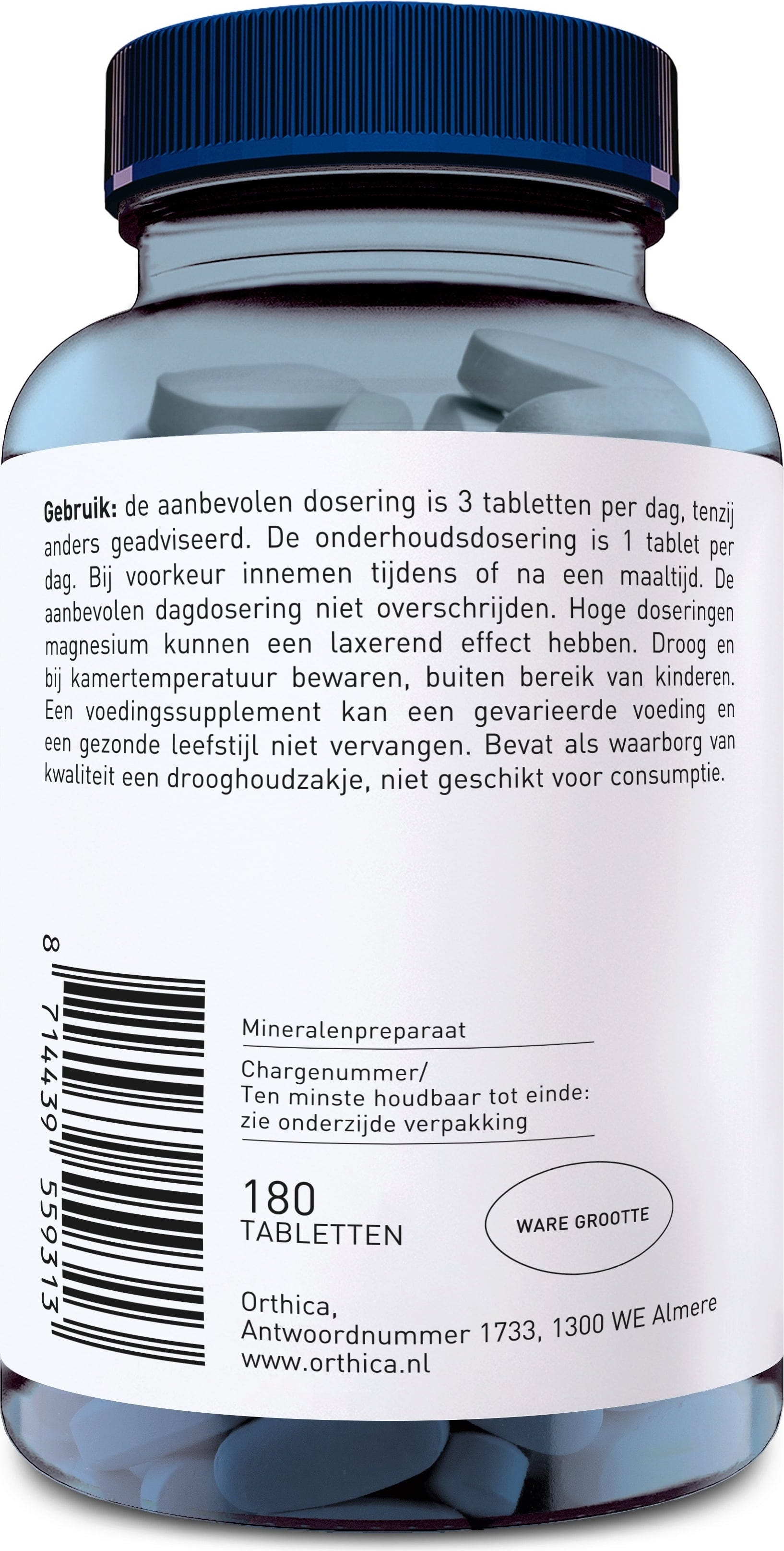 Calciumcarbonat, magnézium (mint oxid), töltőanyag (mikrokristályos cellulóz, hidroxi-propil-cellulóz, nátrium-karboxi-metil-cellulóz), cink-glükonát, fényezőanyag (hidroxi-propil-metil-cellulóz, Isomalt, karnauba viasz), elválasztószer (étkezési zsírsavak magnéziumsói, talkum), színezék (Calciumcarbonat, trigliceridek)