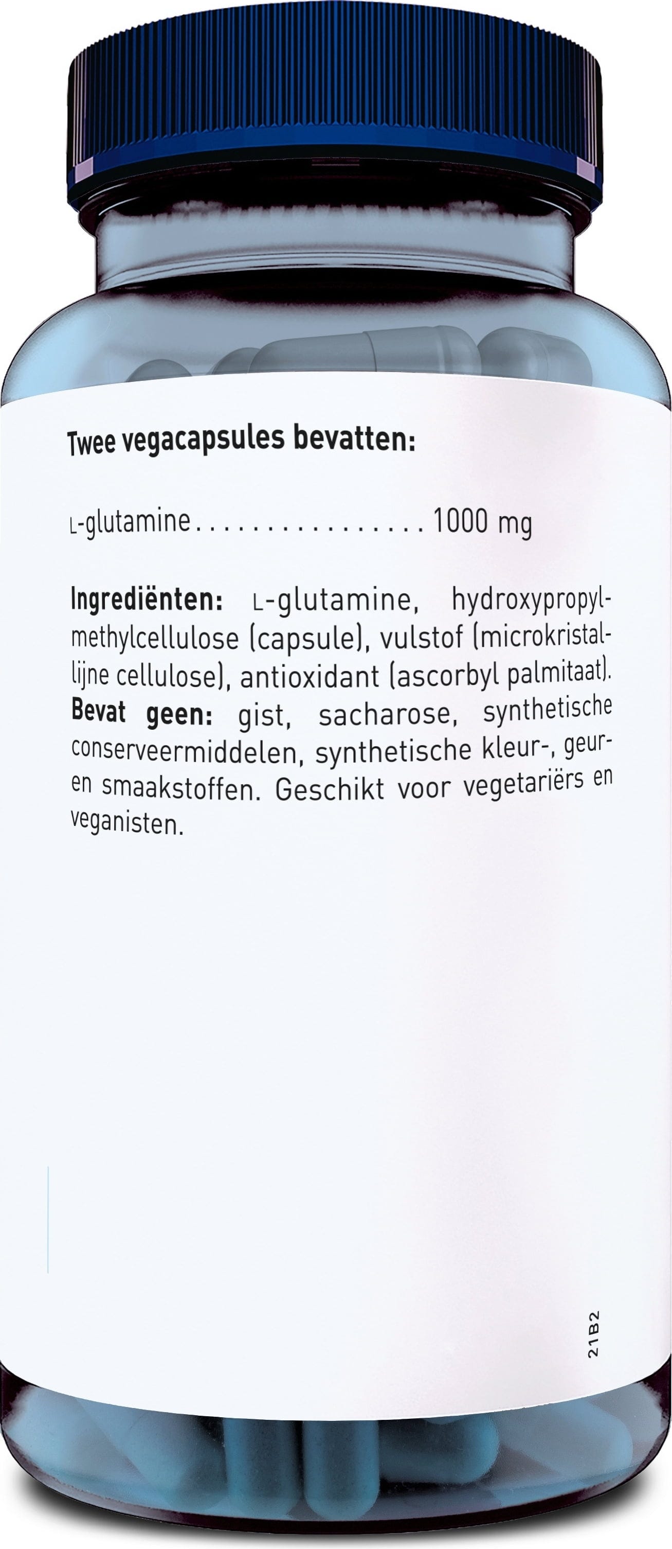 L-glutamin, töltőanyag (mikrokristályos cellulóz), kapszulahéj (hidroxi-propil-metil-cellulóz), antioxidánsok (aszkorbinsav zsírsav-észter)
