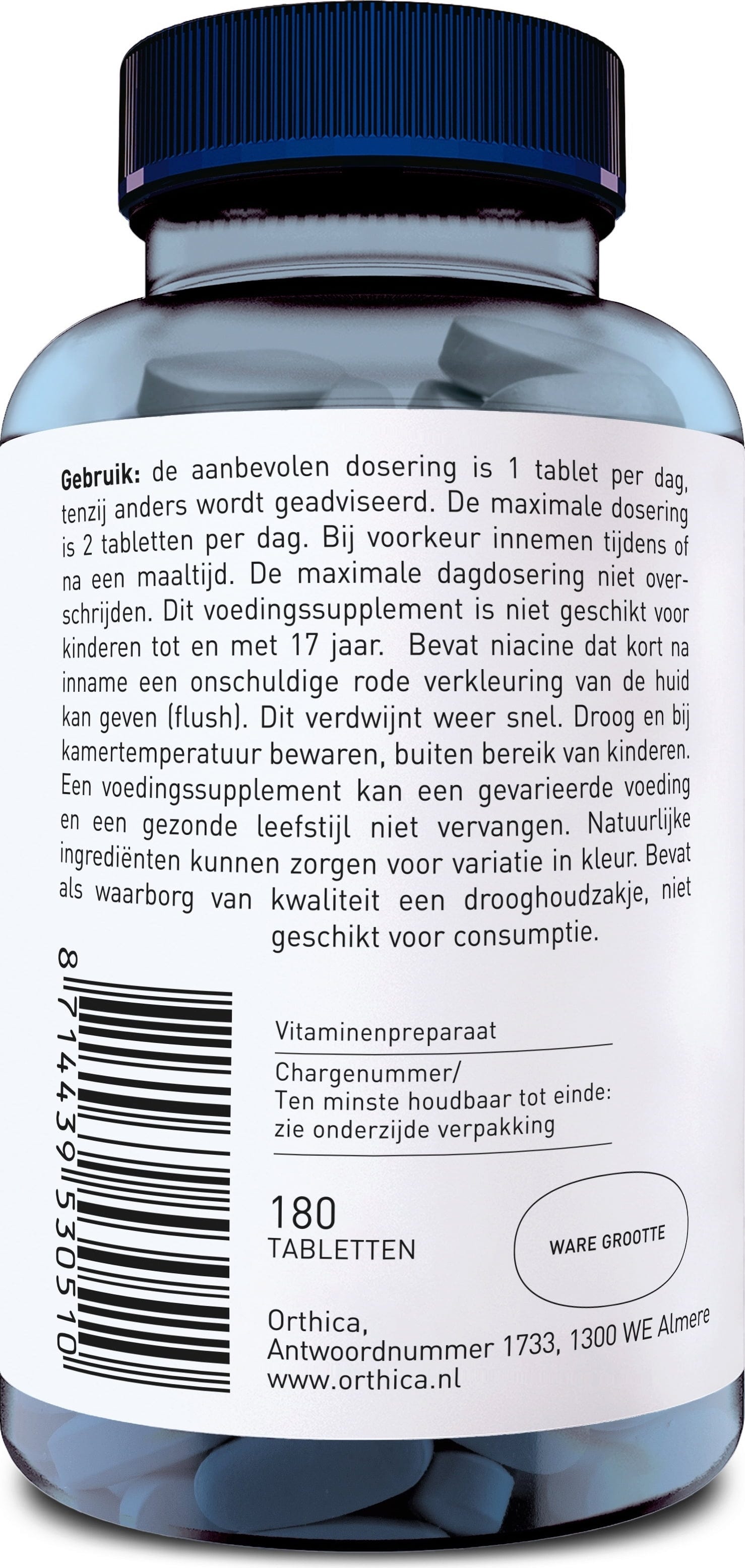 Ez a B-komplex a B1, B2, B3, B5, B6, biotin, folsav és B12 vitaminokat C-vitaminnal, kolinnal, inozitollal és PABA-val kombinálja. A C-vitamin támogatja a normál energia-anyagcserét és hozzájárul a fáradtság és a kimerültség csökkentéséhez. A B6, B12 és folsav B-vitaminok szintén hozzájárulnak a fáradtság és a kimerültség csökkentéséhez, az idegrendszer normál működéséhez és a vörösvértestek képződéséhez. A B-vitaminok az immunrendszer normális működését is támogatják.