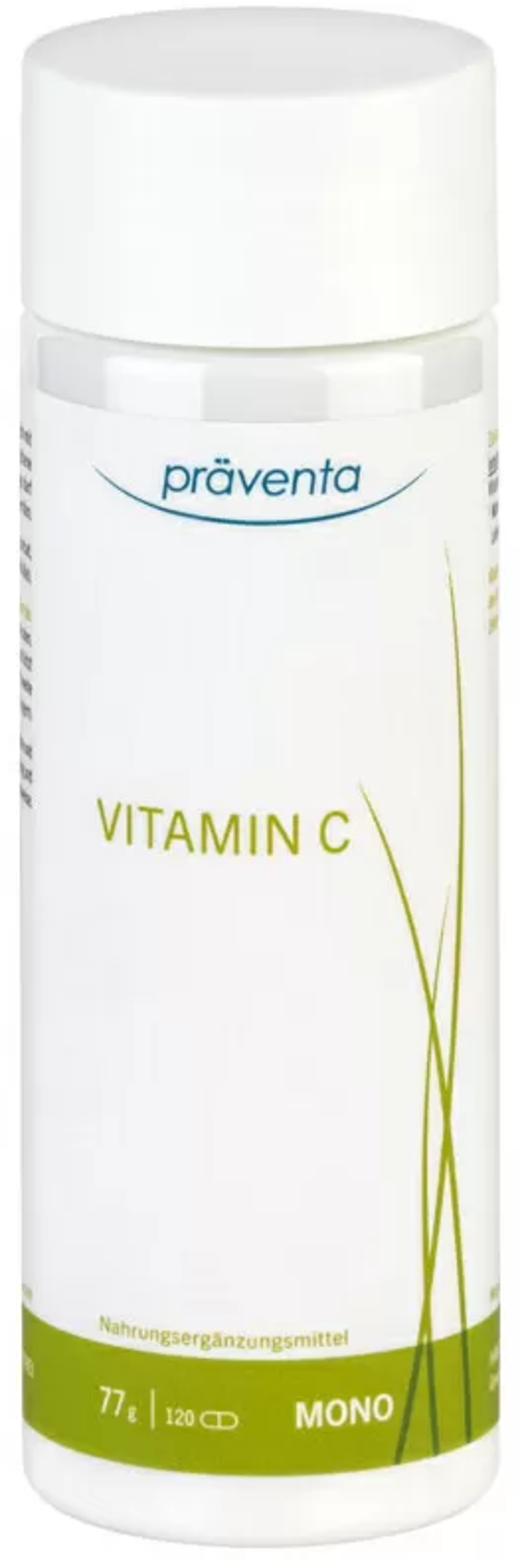 Nagy dózisú, jó biohasznosulású és állati eredetű összetevőktől mentes C-vitamint keres? Akkor a präventa Vegán C-vitamin kapszulákra van szüksége. A hagyományos aszkorbinsav helyett ez a termék pufferolt kalcium-aszkorbátot tartalmaz – a C-vitamin egy különösen lúgos formáját.