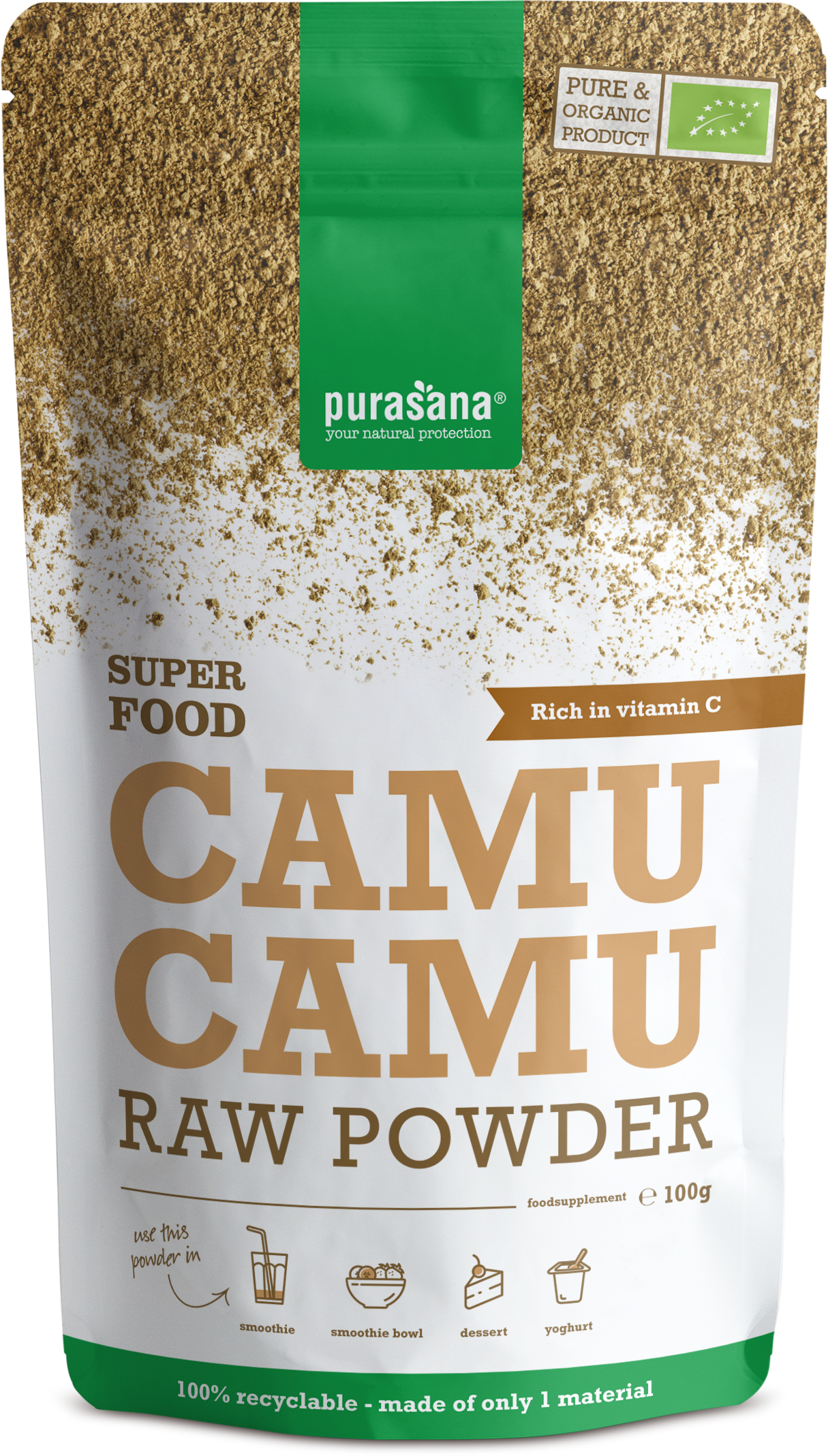 A Camu Camu pirosas lila bogyók a Myrciaria dubia bokron teremnek. Ez elsősorban Peruban őshonos. A kb. 3 cm nagyságú gyümölcs magas cink és C-vitamin tartalommal rendelkezik.