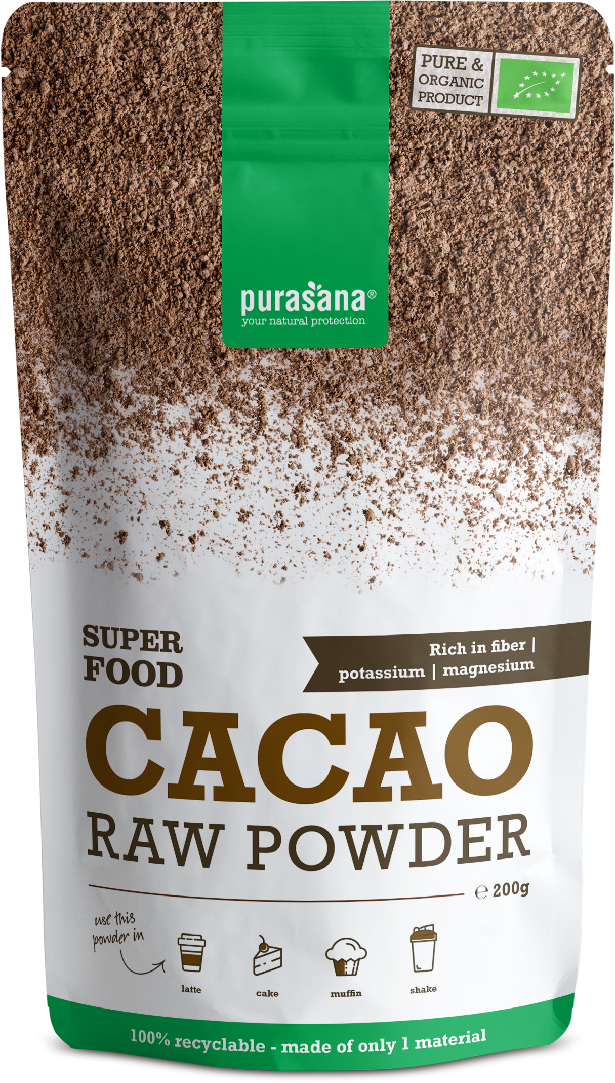 A Purasana Bio Kakaóport hevítés nélkül, a "Theobroma cacao" magokból nyerik. Ez a kis fa a trópusi éghajlatú területen növekszik. A kakaó számos speciális tápanyagot és másodlagos növényi anyagot tartalmaz, a zsír és cukor miatt sokáig alábecsülték.