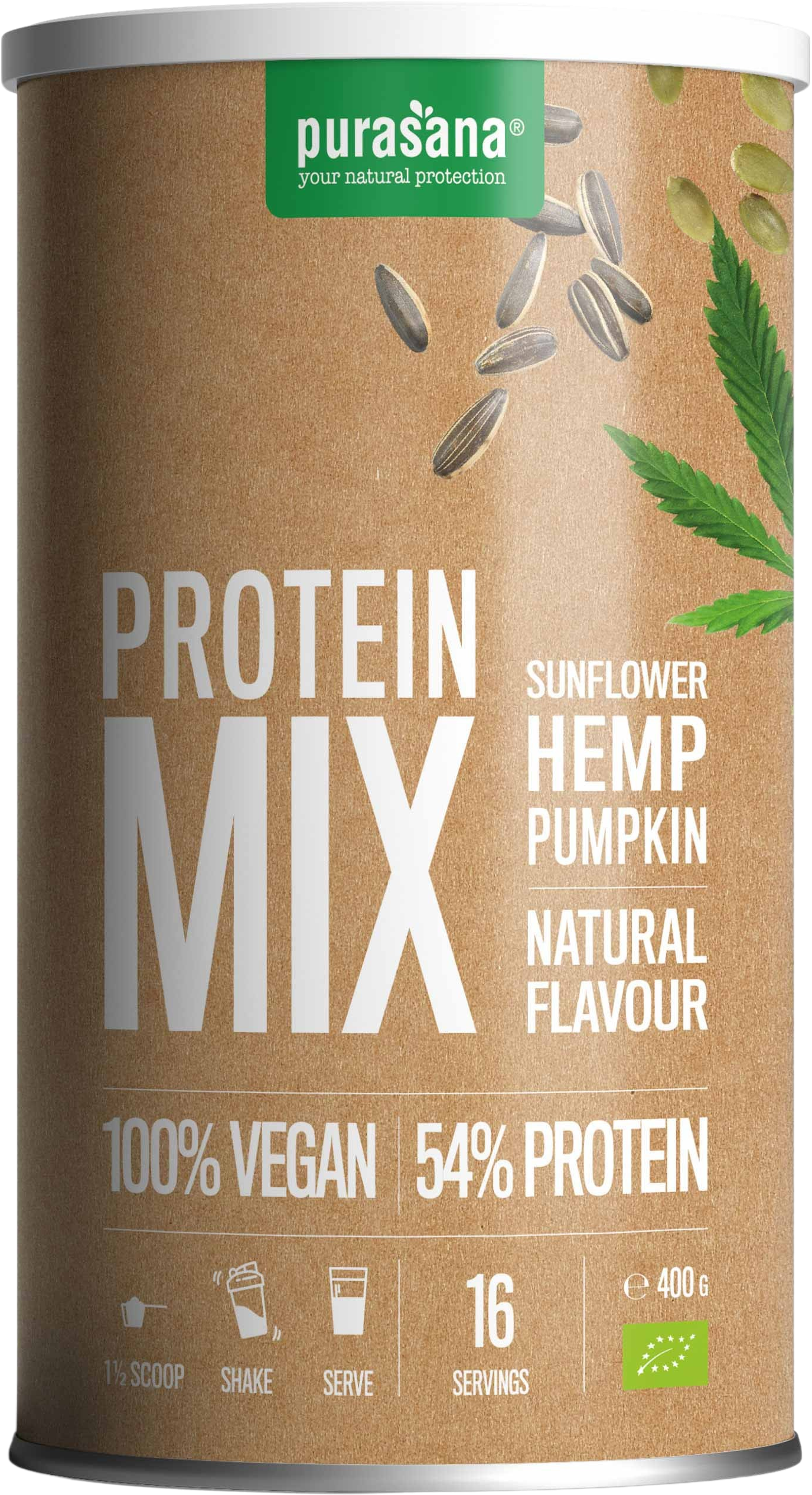 A Purasana Tök-napraforgó-kenderprotein az állati fehérje tökéletes növényi alternatívája.