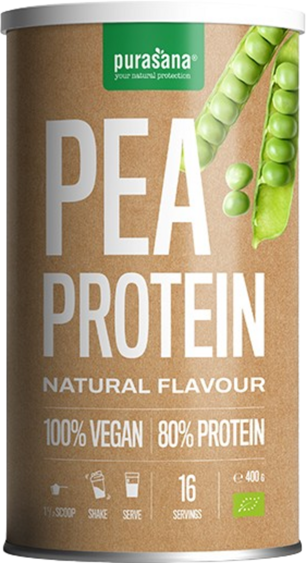 Purasana Vegán Proteinshake - Borsóprotein, Semleges (400 g)