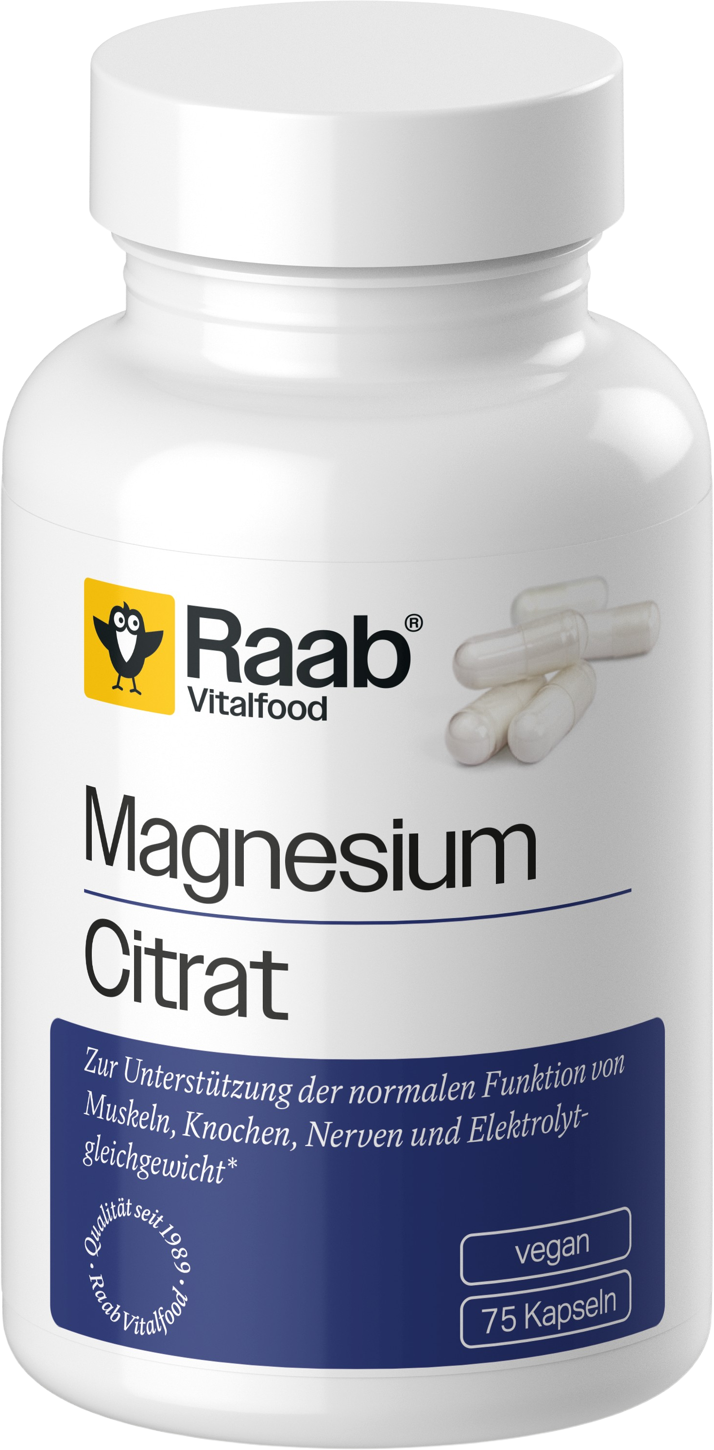 Raab Vitalfood magnézium-citrát kapszula formájában – ideális mindazok számára, akik egyszerűen és adalékanyagok nélkül szeretnék pótolni magnézium-szükségletüket. A szerves kötésű forma növényi cellulózból készült vegán HPMC kapszulákban kapható. Színezékektől, töltőanyagoktól és tartósítószerektől mentes.