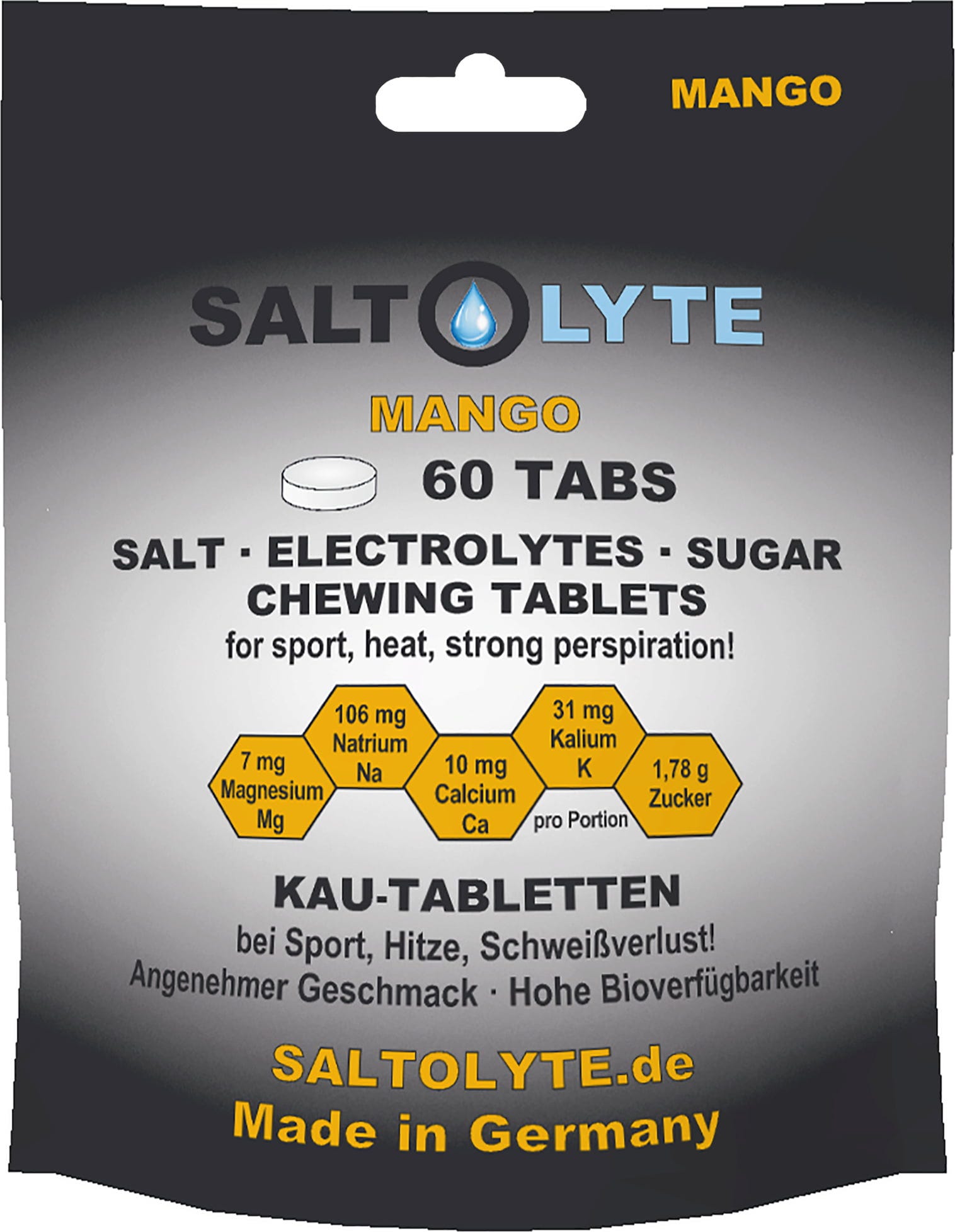 A SALTOLYTE 60 só- és elektrolit rágótabletta praktikus formában biztosítja az esszenciális ásványi anyagokat – ideális intenzív fizikai aktivitás vagy magas hőmérséklet esetén. A nátrium, kálium, kalcium és magnézium kombinációja tökéletesen kiegyensúlyozott.