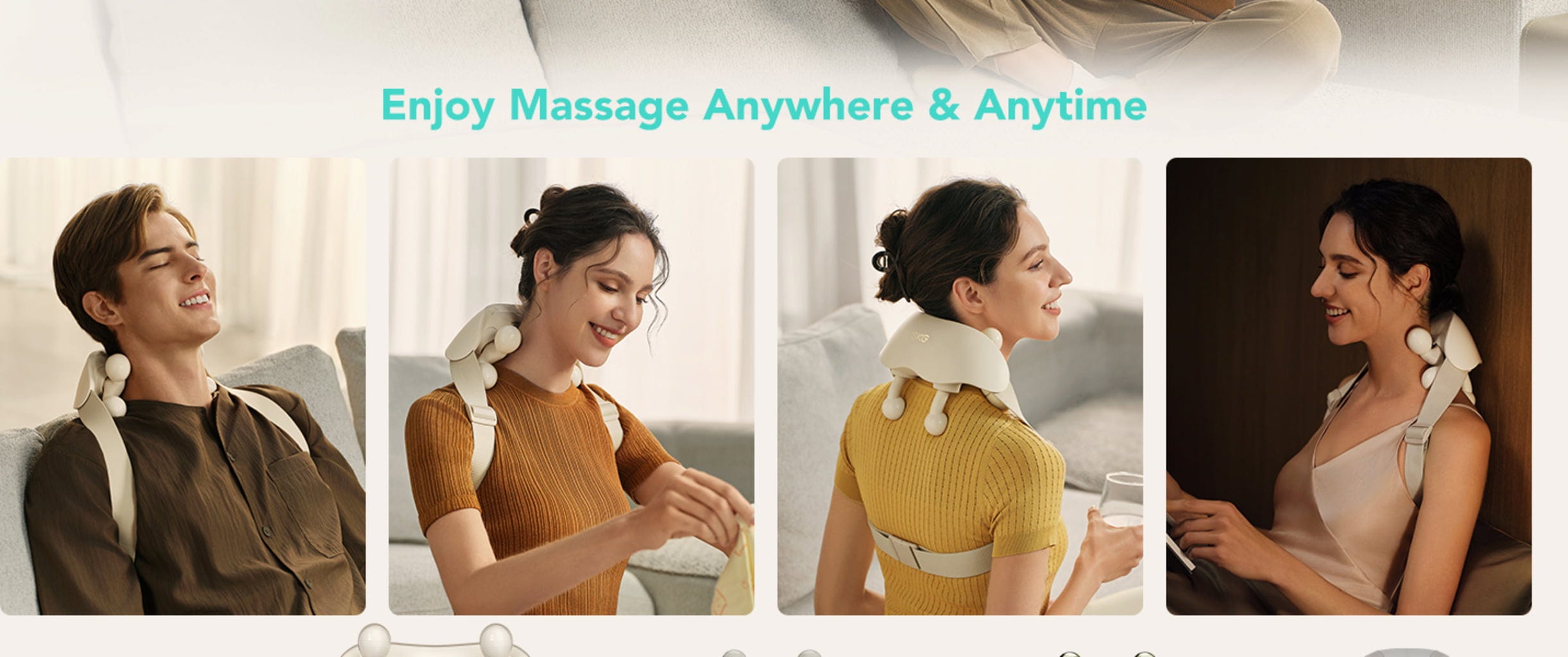 - Szabad kezes használat: A praktikus hátpánt lehetővé teszi a masszázst munka, házimunka vagy tévénézés közben