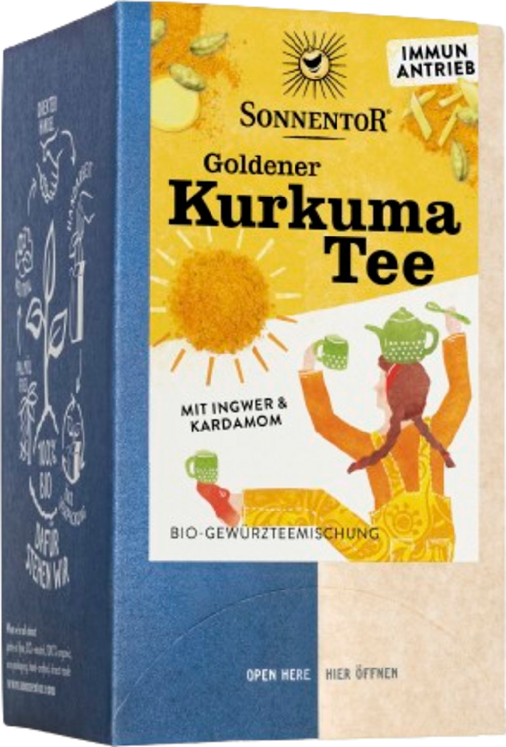 Az Arany kurkuma tea immunálisan fitté teheti. A gazdag, sötétarany színben tündöklő tea a kávé kiváló alternatívája. Langyosan fogyasztva jól illik különböző sajtokhoz és serpenyőben készült ételekhez. Igény szerint gyűszűnyi (növényi) tejjel finomítható.