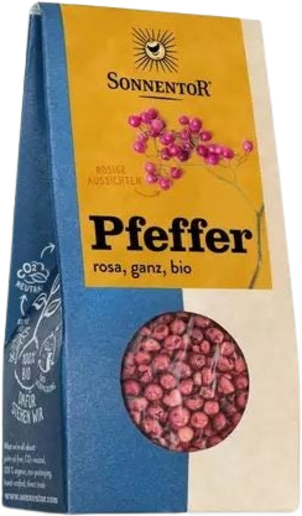 A rózsaszín bogyók íze csodálatosan gyümölcsös, enyhén édeskés és gyengén borsos. Ízében a borókabogyóra emlékeztet.