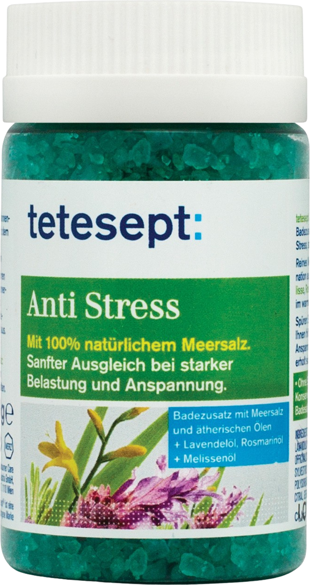 A mindennapok elég stresszesek – kényeztesse magát egy jól megérdemelt pihenéssel a tetesept "Anti-stressz" tengeri fürdősóval.