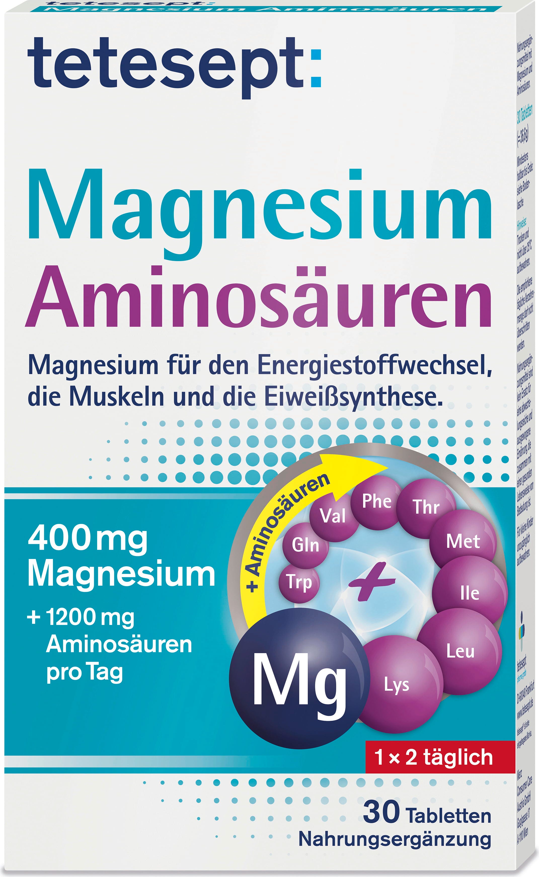tetesept Magnézium + Aminosavak, 30 tabletta