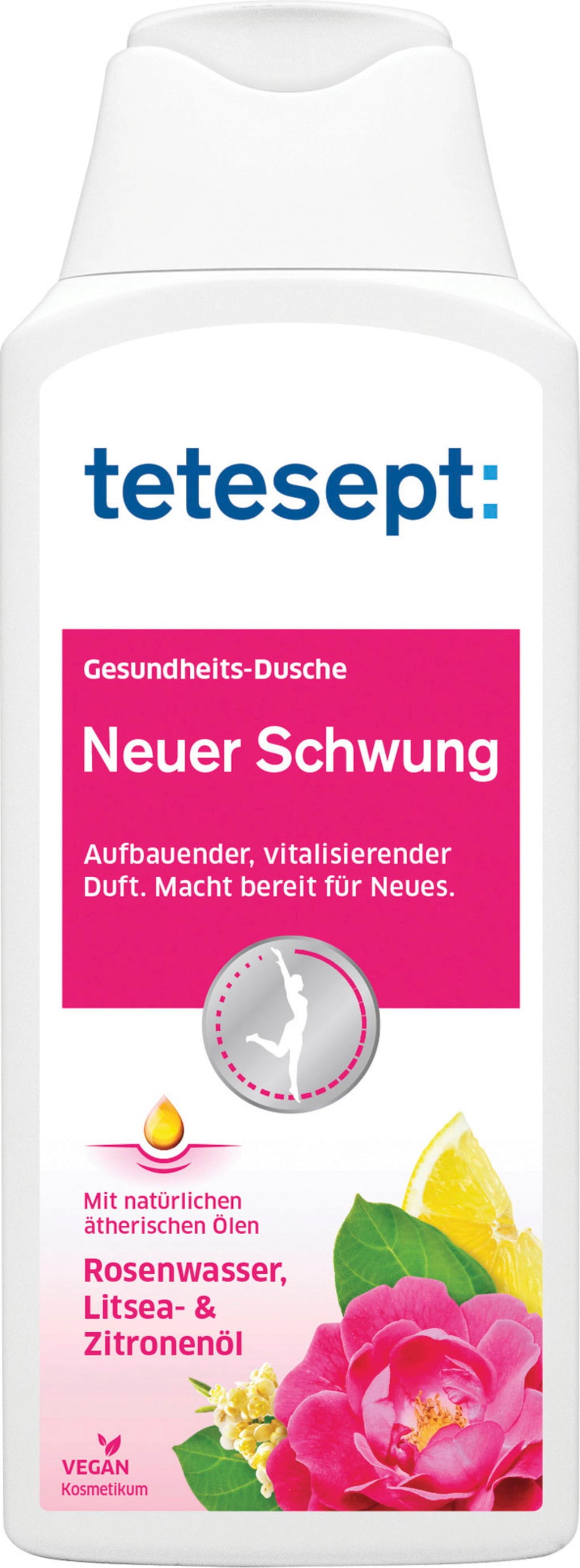 A tetesept "Új lendület" tusfürdő gyengéd kényeztető élményt és kellemes illatot biztosít. A Litsea Cubeba és a citrom természetes illóolajait aromás damaszkuszi rózsavíz egészíti ki.