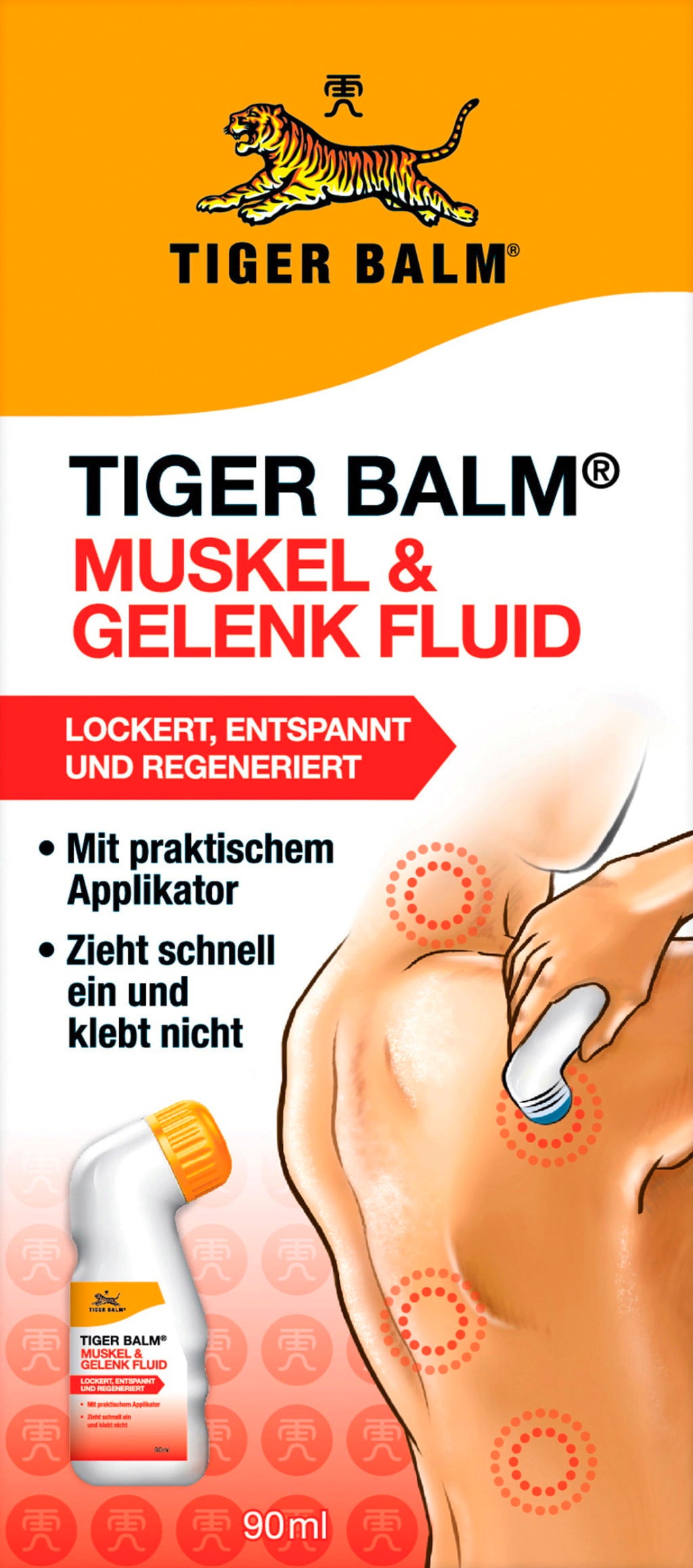 A Tiger Balm Izom & Ízület Fluid egy tápláló emulzió külsőleges használatra. A praktikus applikátornak köszönhetően a Fluid közvetlenül a bőrre is felvihető – közvetlen kézi használat nélkül. Ezáltal a felvitel tiszta és egyszerű, még útközben is.