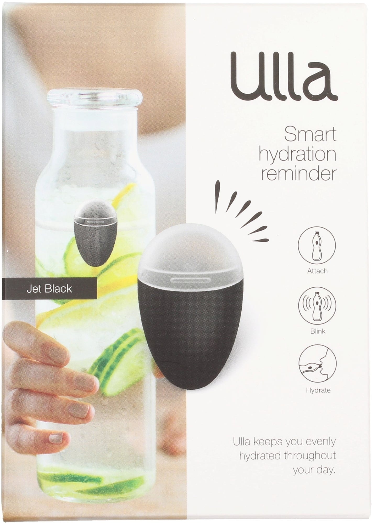 Az Ulla illeszkedik a kulacshoz, tudja, mikor iszik, és villog, ha több vízre van szüksége a szervezetben és az életében. Az intelligens folyadékbevitel emlékeztető óra villogni kezd, ha egy ideje nem ivott. Az Ulla optimális hidratálási ciklusának köszönhetően a folyadékbeviteli szokások drámaian javulni fognak. Applikáció, töltés és macera nélkül. Ulla mindig dolgozik, de soha nincs útban.